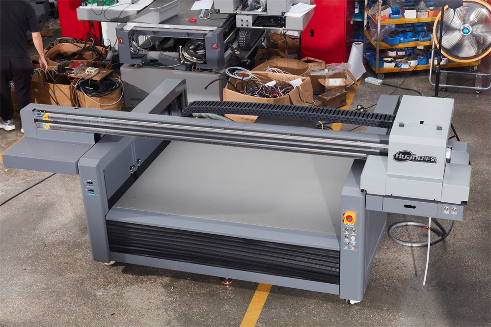 華弘1610uv平板打印機(jī),打印幅面1.6m*1m,配備智能分區(qū)吸風(fēng)平臺,打印平臺可升降500mm,可選配視覺定位系統(tǒng),機(jī)架全鋼結(jié)構(gòu)退火處理龍門精銑,led固化系統(tǒng)即打即干。
